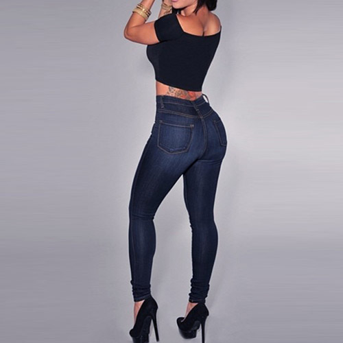 Crafted from soft and stretch fabric,with high waist and slim fit design,this skinny jeans is your