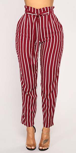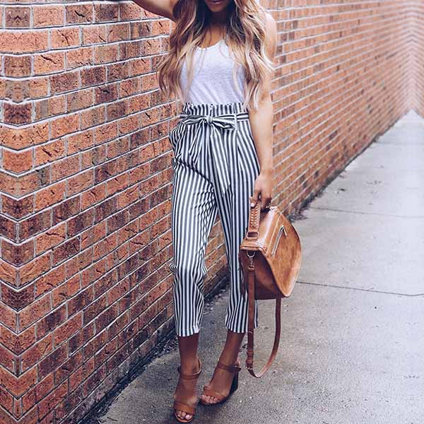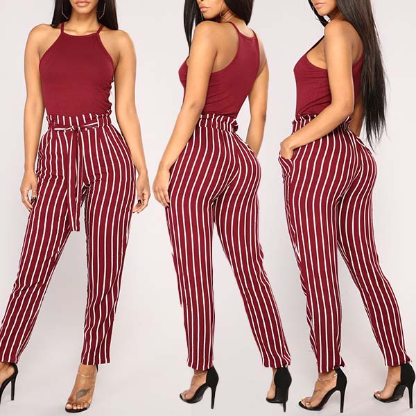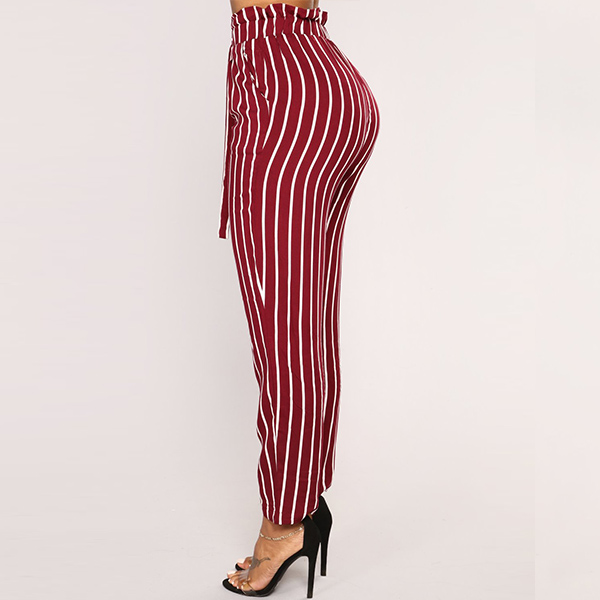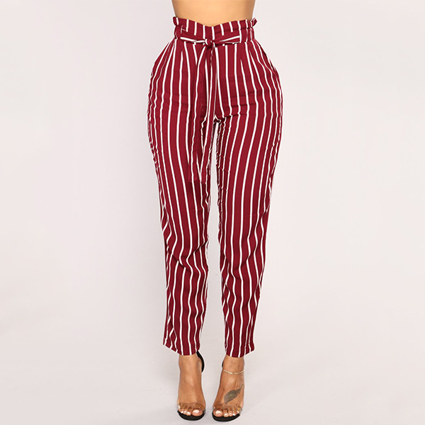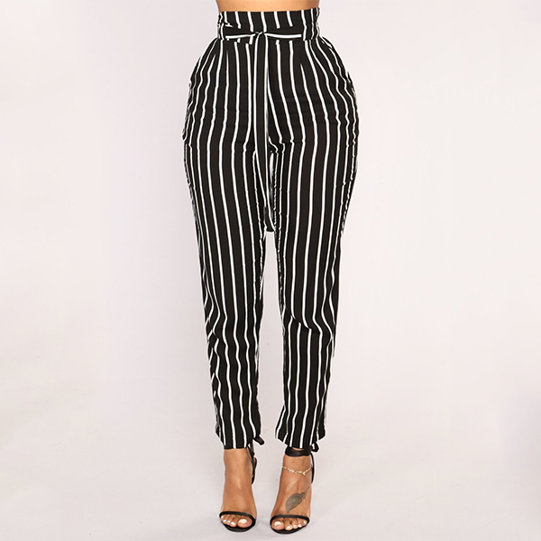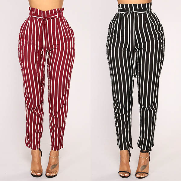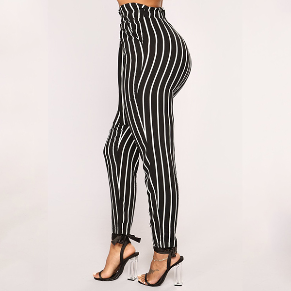 Fashion High Waist Slim Fit Striped Pants