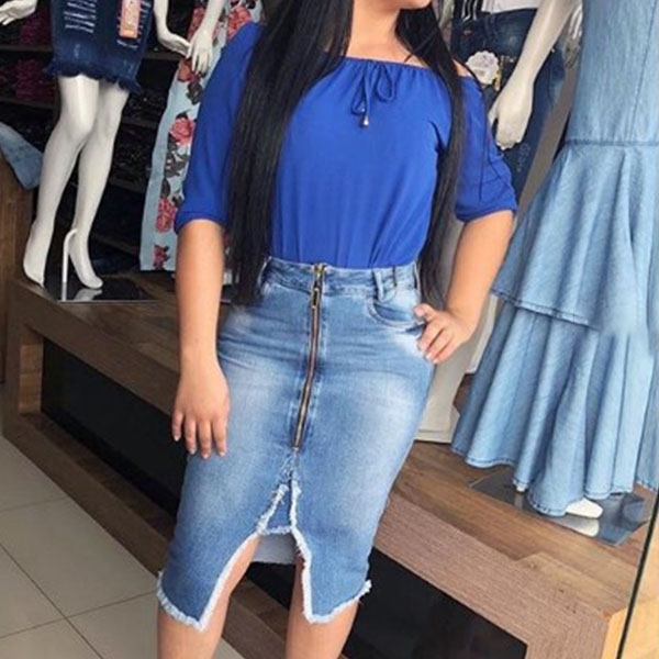 Finish a stylish daily look with the help of this denim skirt. It is finished with high waist and a fit silhouette,
