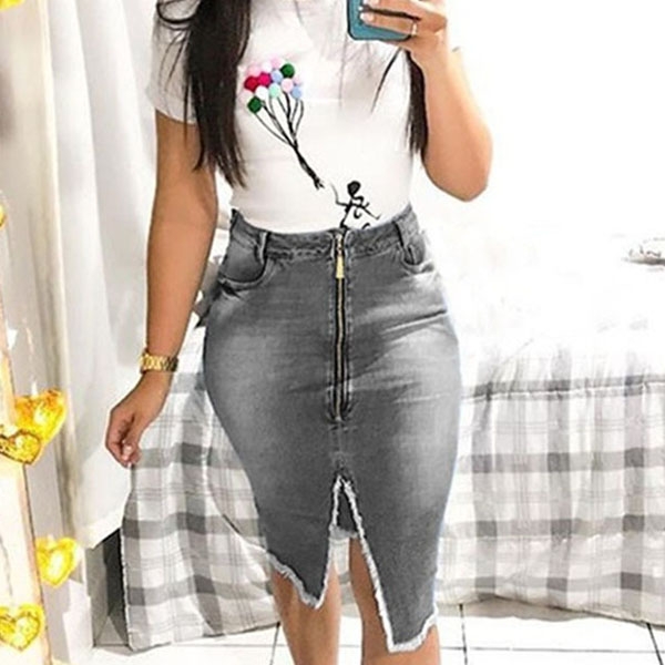 this piece can easily showcase your seductive hips. What's more,the slit hem and front zipper design