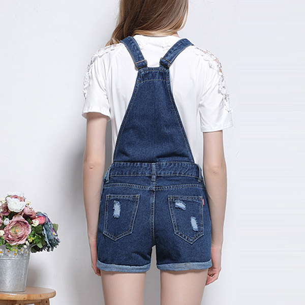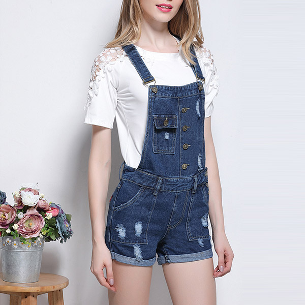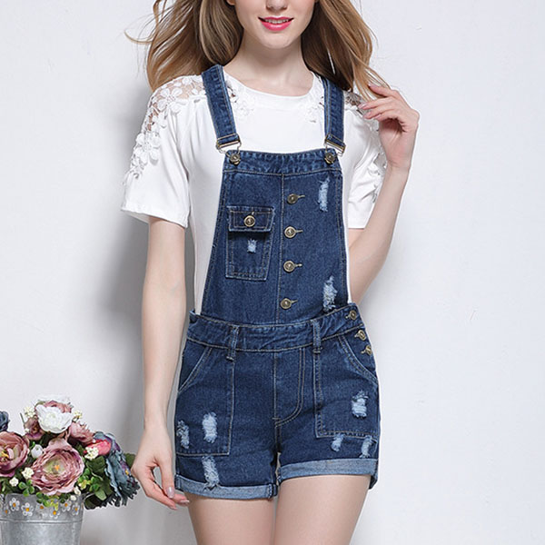 For a youthful,playful and stylish style,you can turn to this denim overalls for help. The ripped and buttons details make it look more attractive,and the