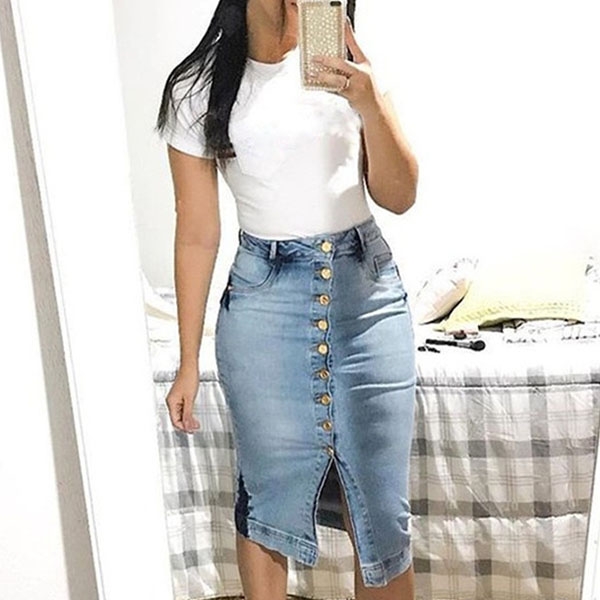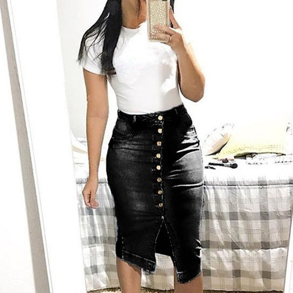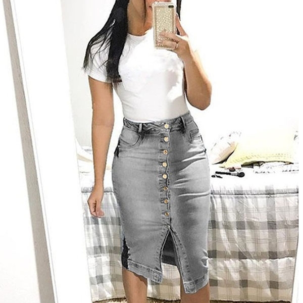 as your seductive hips,while the slit hem and front-button design will further enhance its charm.