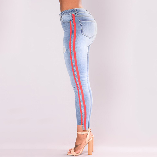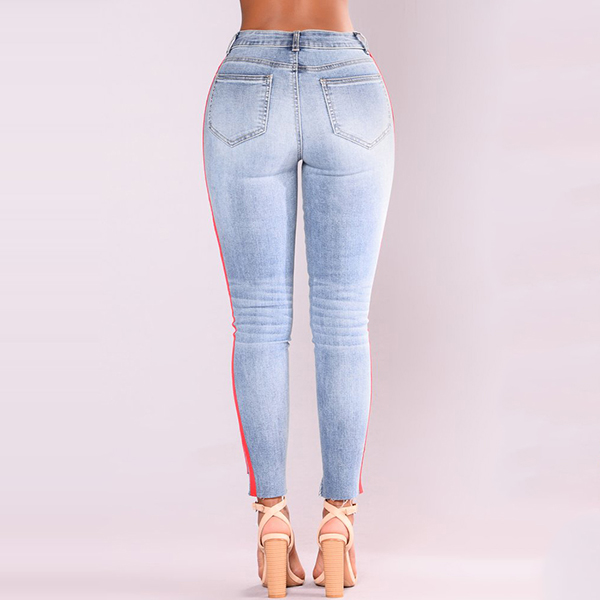 Enrich your wardrobe ensemble by adding this jeans. Both side with stripe spliced design makes this piece look more