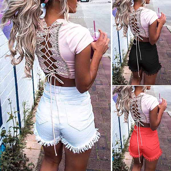 hits. Finished with high waist and tassel hem design,this shorts can easily showcase your charming and