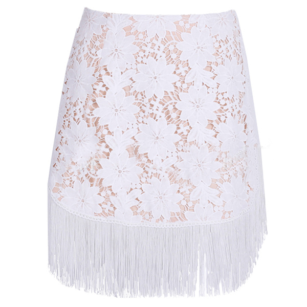 You can boost your charm with the help of this lace skirt. It is styled with high waist and tassel hem,this skirt not only can