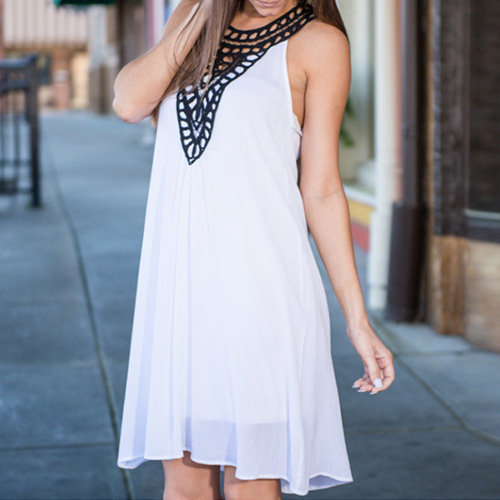 its breezy fabric and loose silhouette. And its hollow out lace spliced design makes it look more
