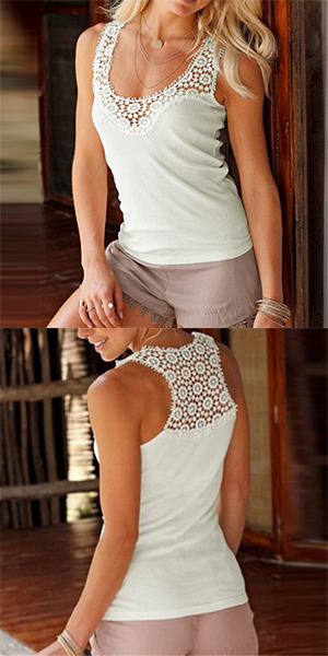 Solid color style,its hollow out lace spliced design makes this tank tops look more feminine. A perfect blend of casual,cozy,