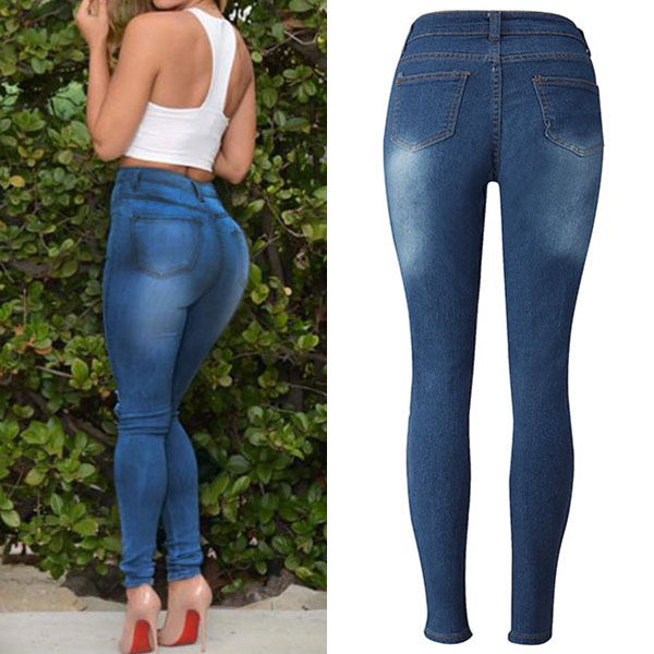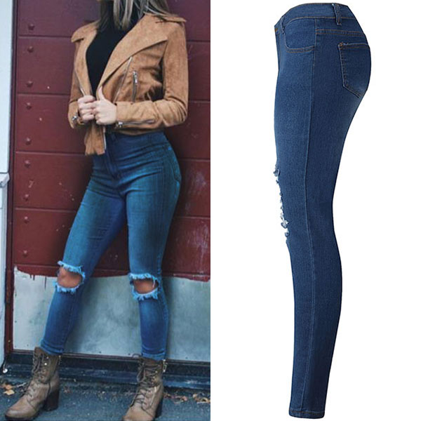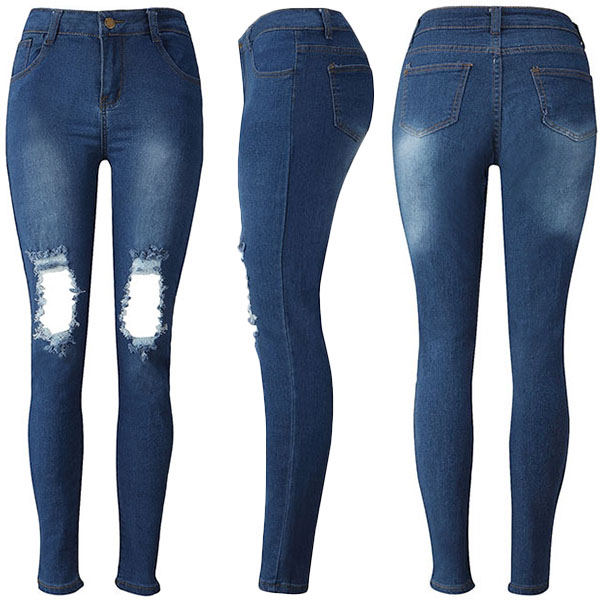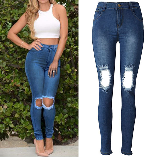 Its high waist and skinny silhouette design demonstrate your charming and slender legs,while the hollow out ripped design