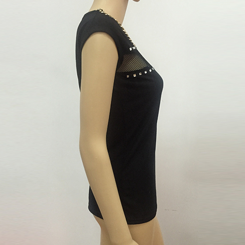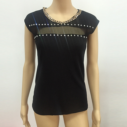 hotfix rhinestone, cap sleeve and gauze spliced design, its necklace neckline makes it more