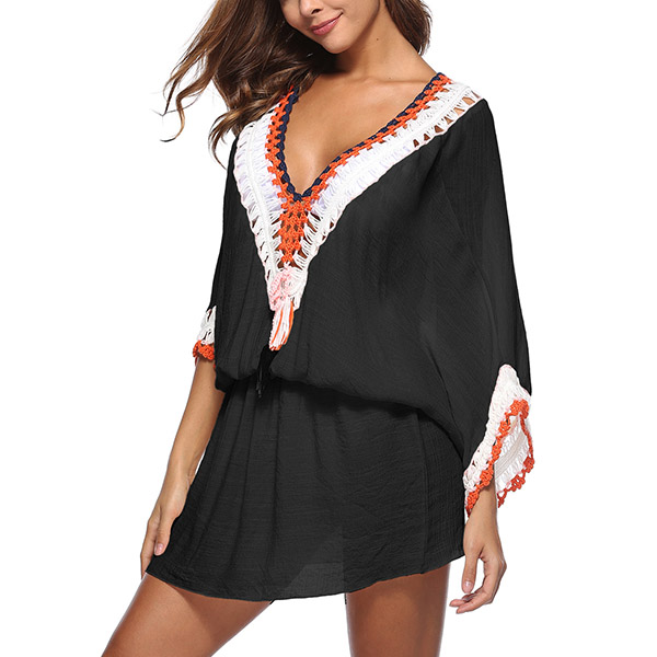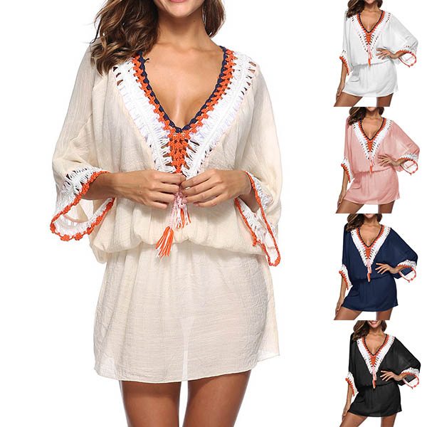 When heading to the seaside,you can choose this beach dress! The dolman sleeve and v-neck design