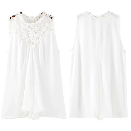 with sleeveless,cozy fabric and lace crochet spliced design,this wonderful piece can give
