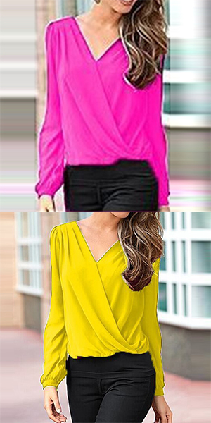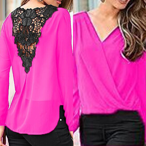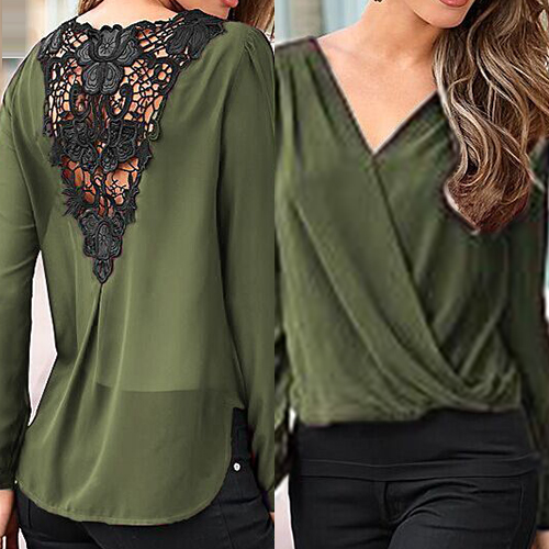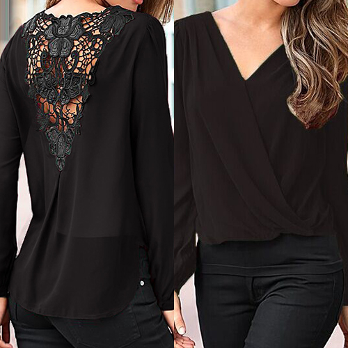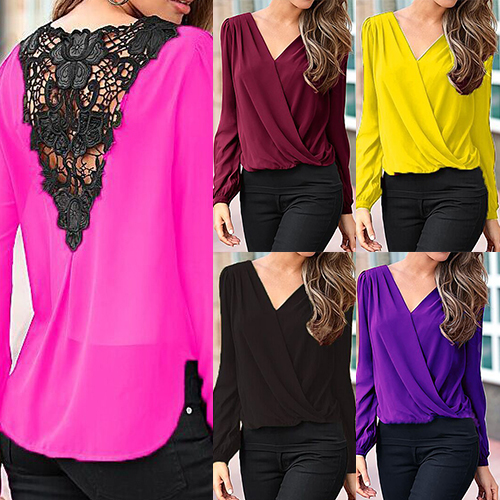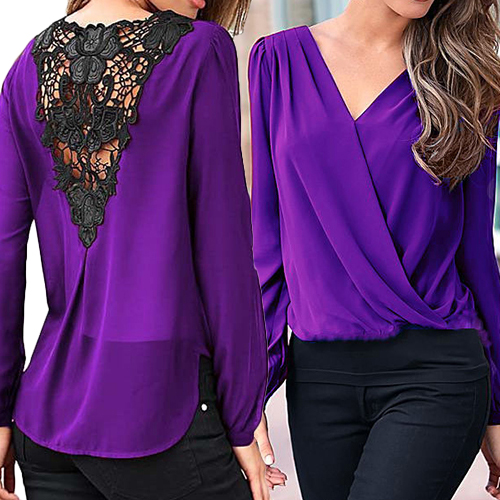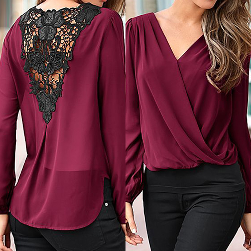 Invest on a minimal blouse such as this one. It features lace paneled back, surplice front, V neckline