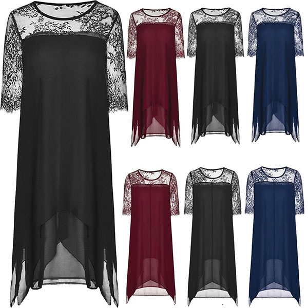 Moreover,the lace spliced details and irregular hem design will make this piece look more attractive.
