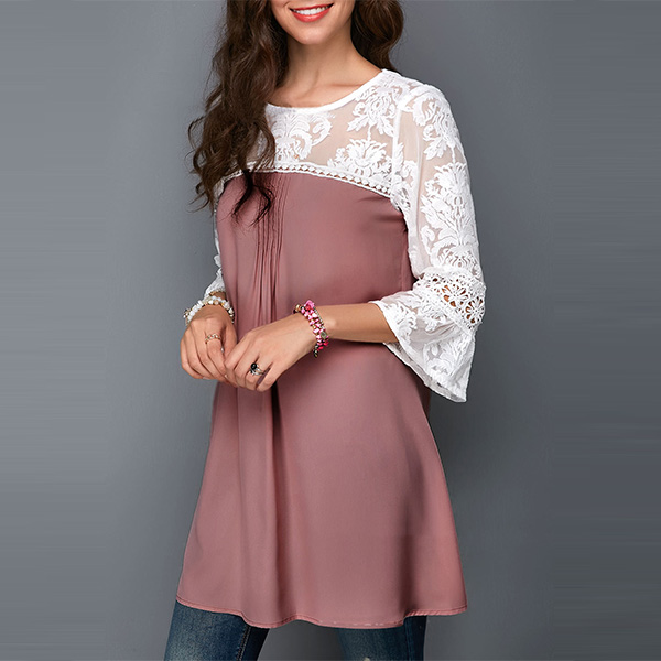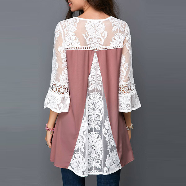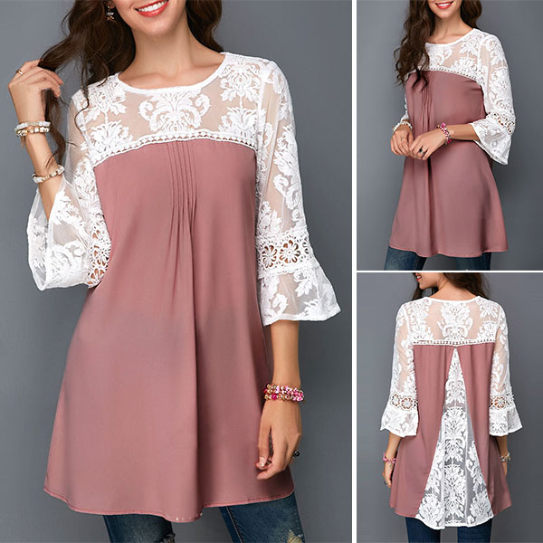 and a loose silhouette,this top can offer you a comfortable day,and the lace spliced design makes this