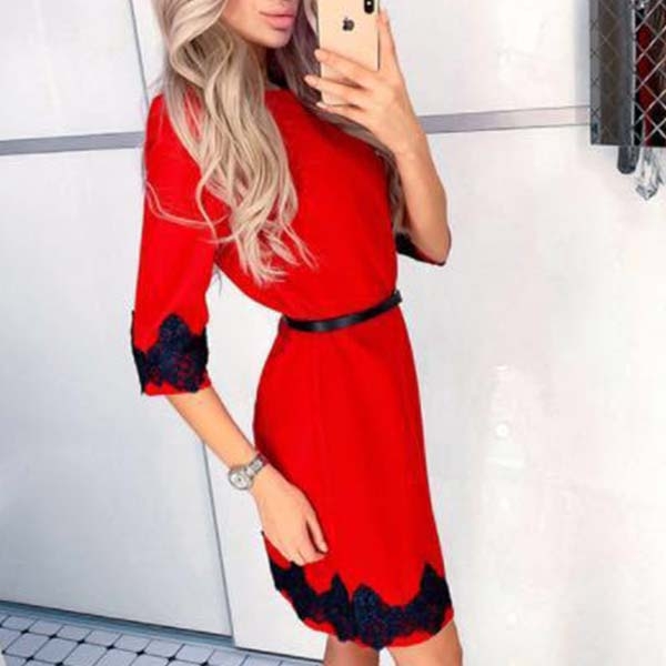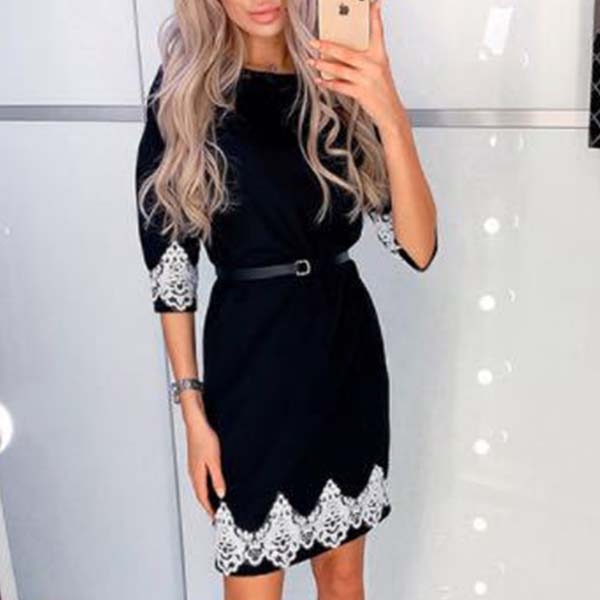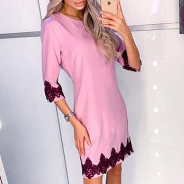 this delicate dress in your team. Finished with 3/4 sleeve,round neck and lace spliced details,