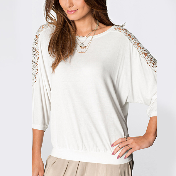 You can trust in this t-shirt to give you a cozy yet feminine style. It boasts a solid color,designed with 3/4 sleeve,