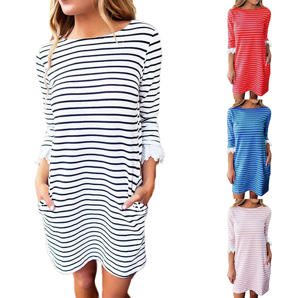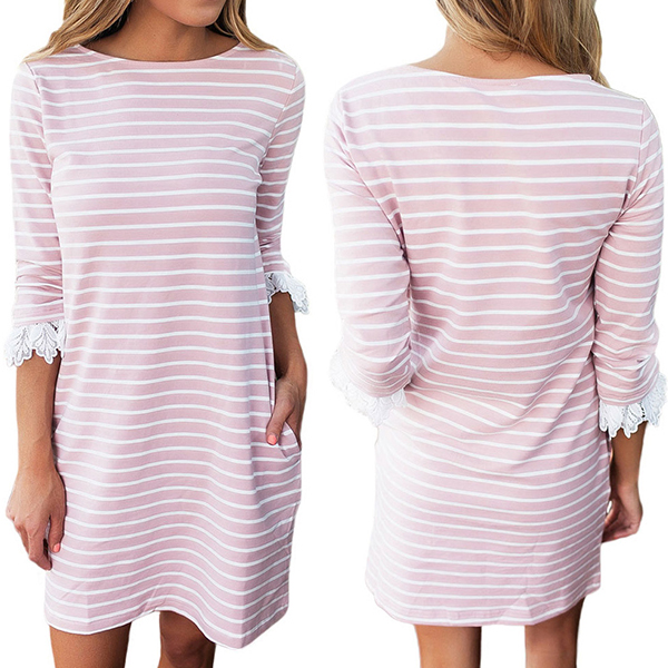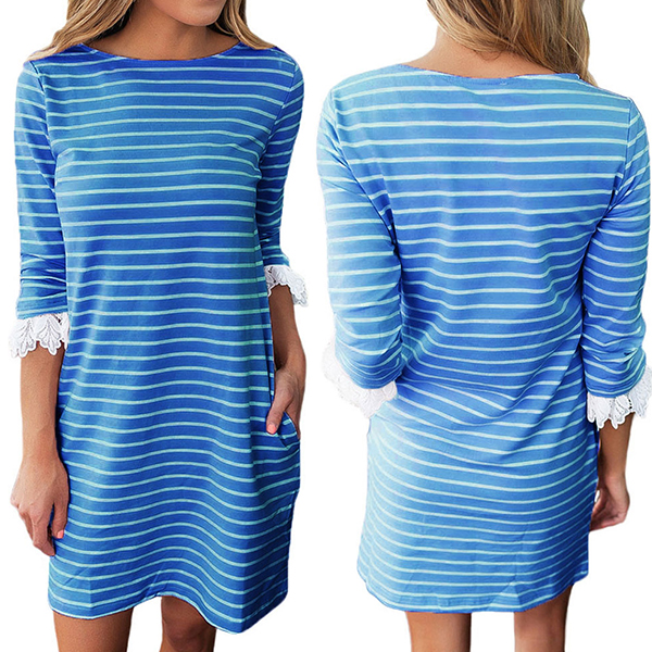 lace spliced 3/4 sleeve,round neck and cozy fabric,simple,cozy and stylish. And the pockets design lends you some casual flavor.