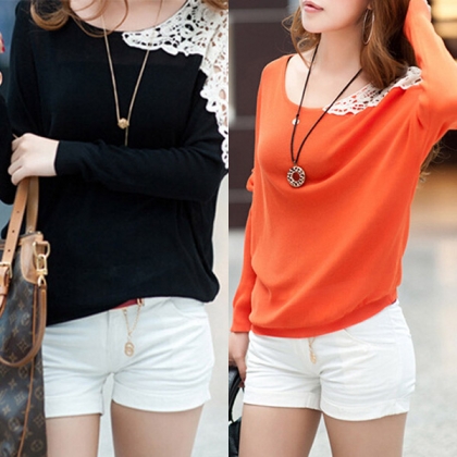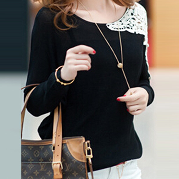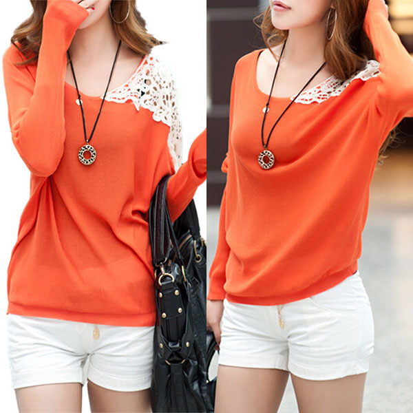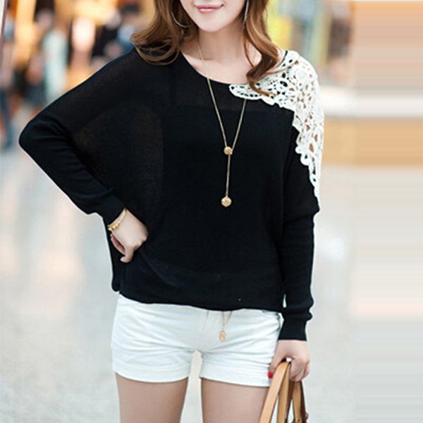 Boost your daily style with the help of this knit top. Comes with a solid color,the lace spliced and dolman