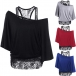 Fashion Lace Spliced Dolman Sleeve T-shirt