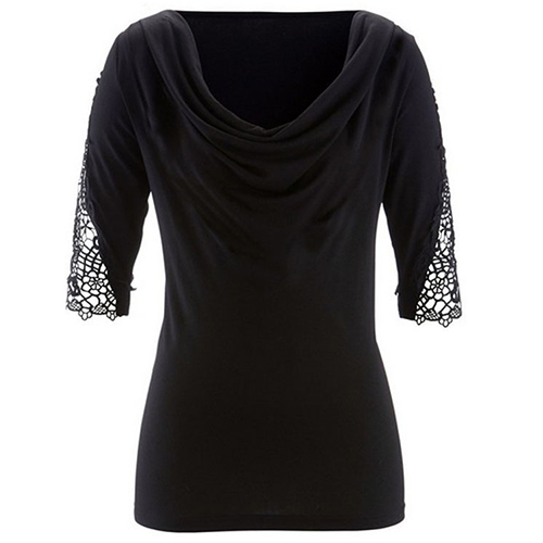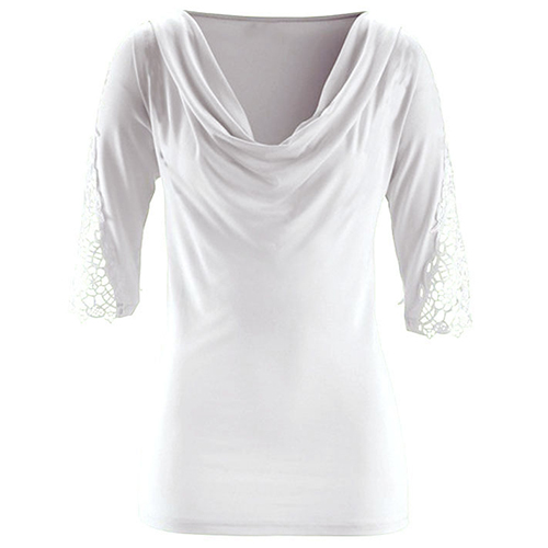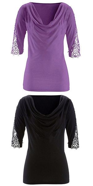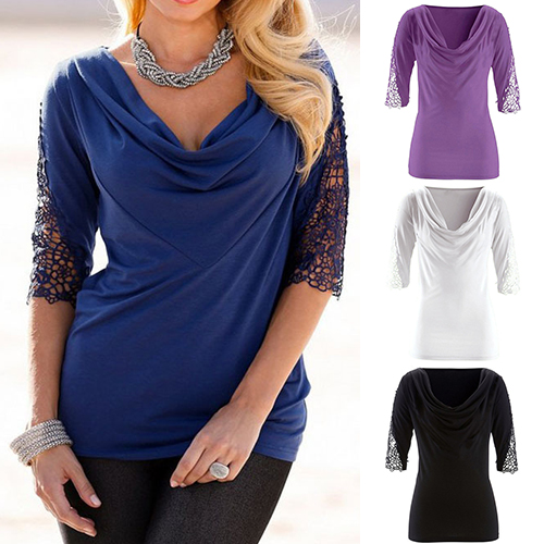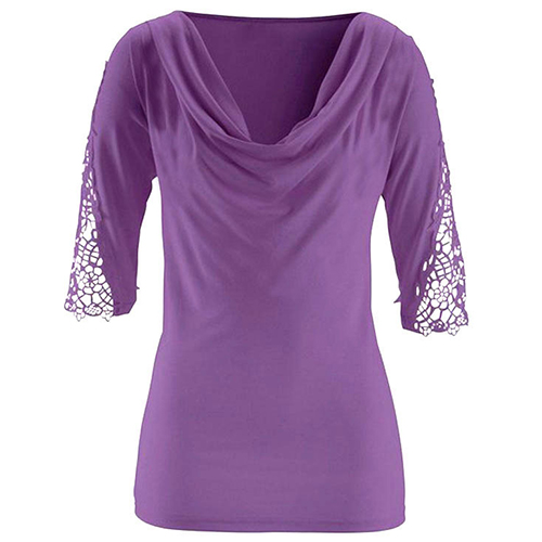 Only need one glance,you would fall in love with this t-shirt. Solid color style,with lace spliced half sleeve and