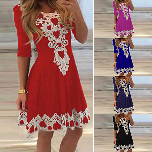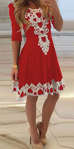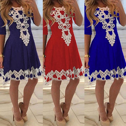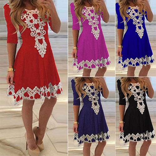 This dress can give you an easy transition for daytime work to night gatherings. Lace spliced style,