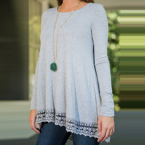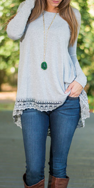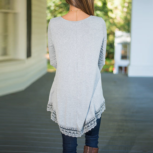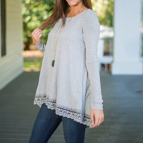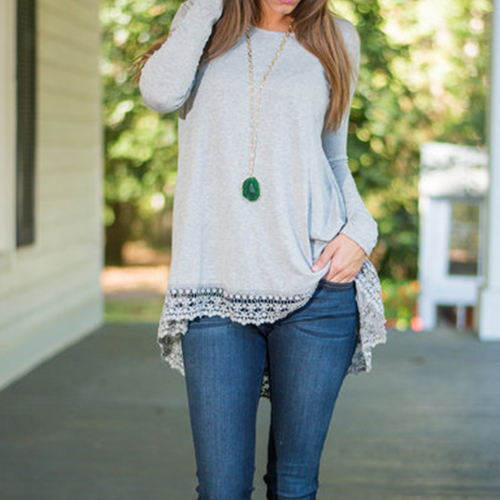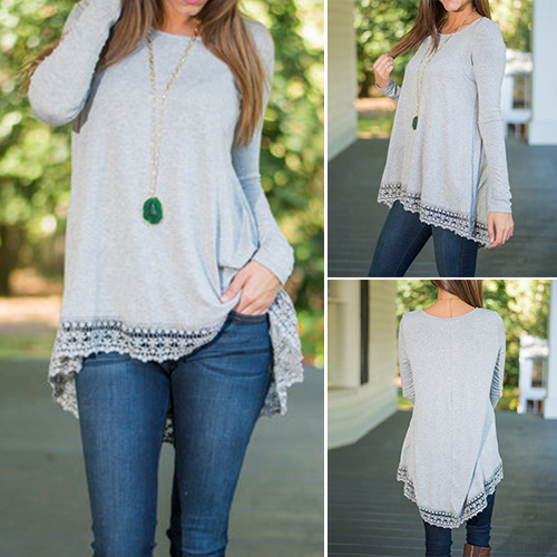 an all-day comfort. Solid color style,with long sleeve and round neck design. And its lace spliced