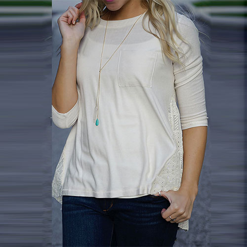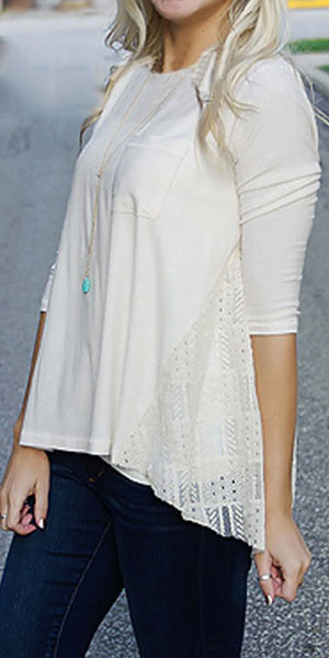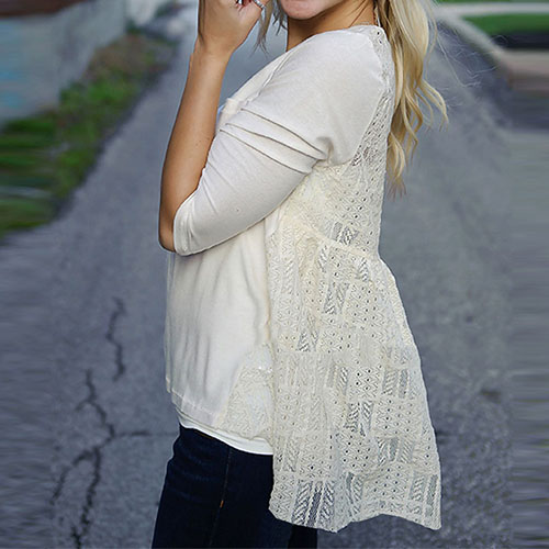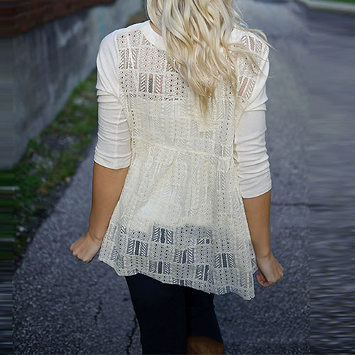 Your romantic dating would be completed by this stylish lace tops. Solid color style, boasting round neck,