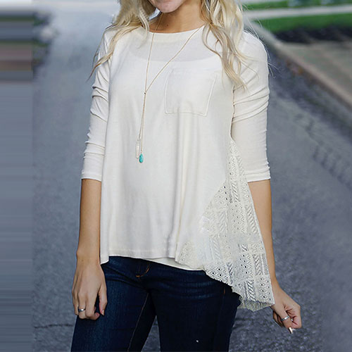 long sleeve, hollow out and lace spliced design, this piece can let you enjoy a chic and fashion look.