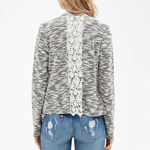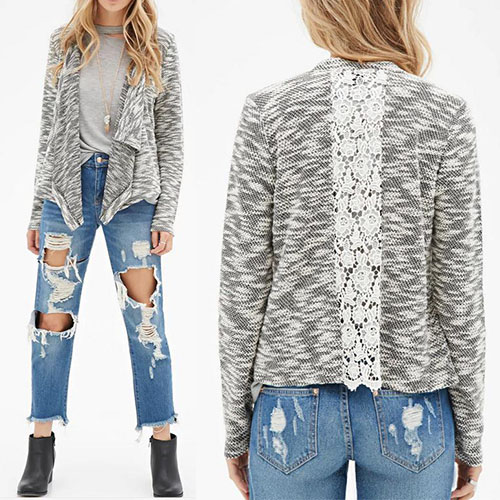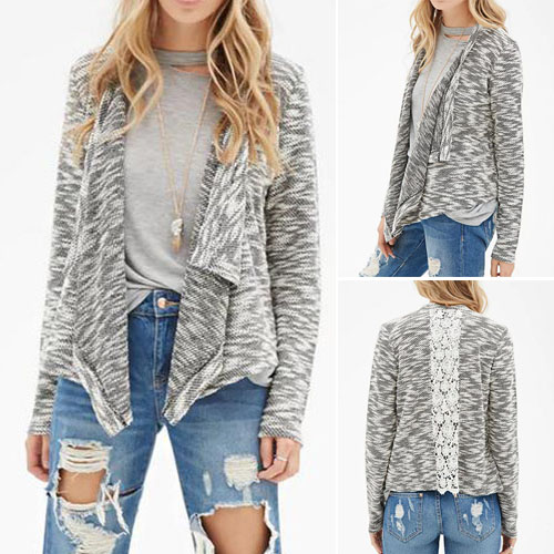and irregular hem design, back lace spliced lends a chic and fashion look. With this cardigan,