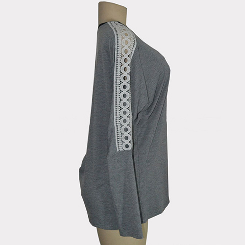 sleeve,round neck and comfortable fabric,and its lace spliced design makes it look more feminine.
