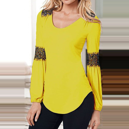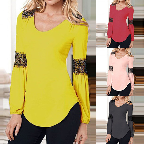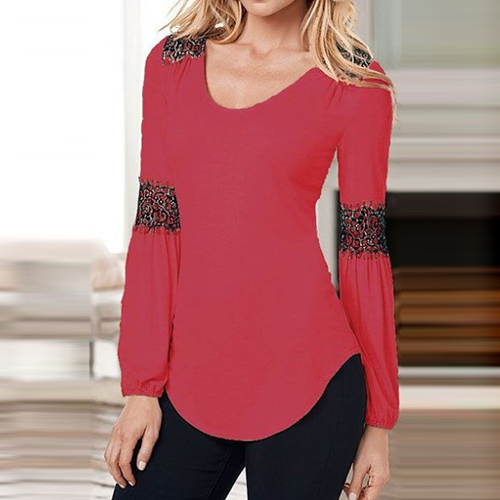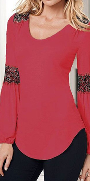 with long sleeve and round neck design,its lace spliced details add some femininity. Easy to match with your any bottoms.