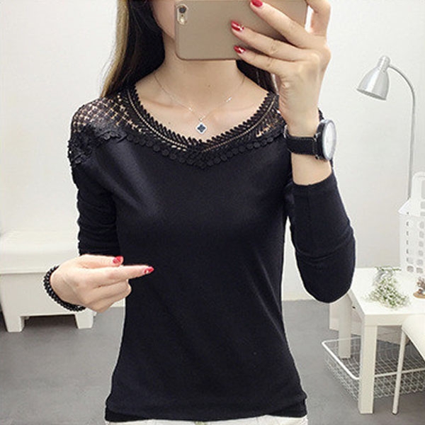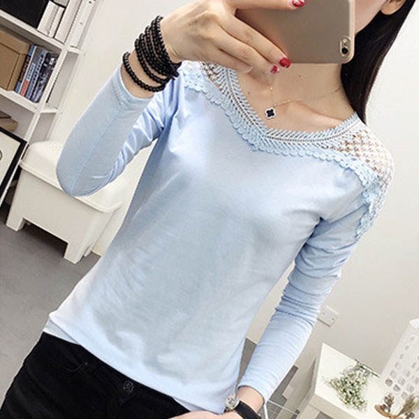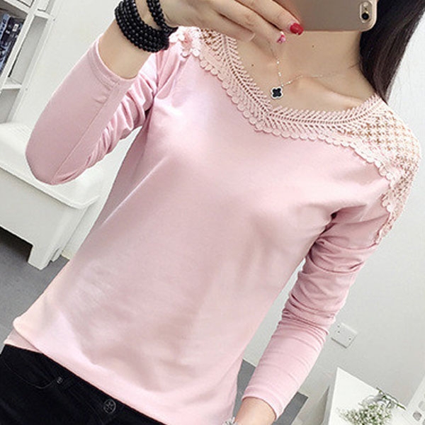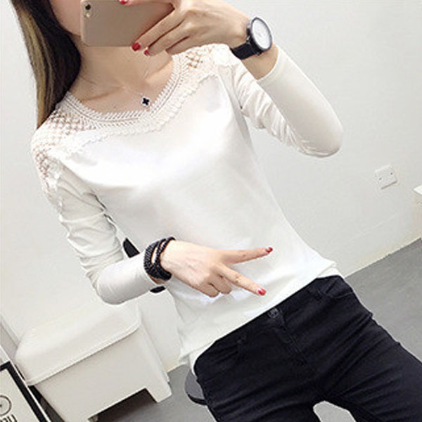 Comes with a solid color,with long sleeve and round neck design,the lace spliced design will enhance its charm.