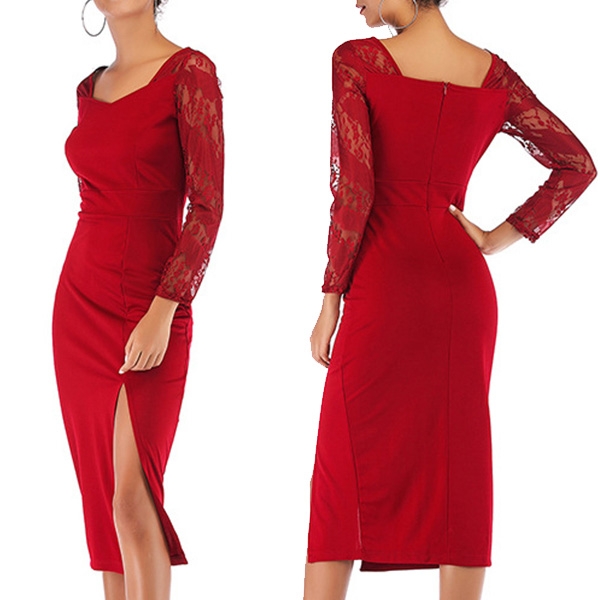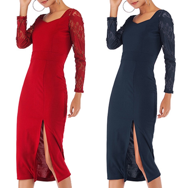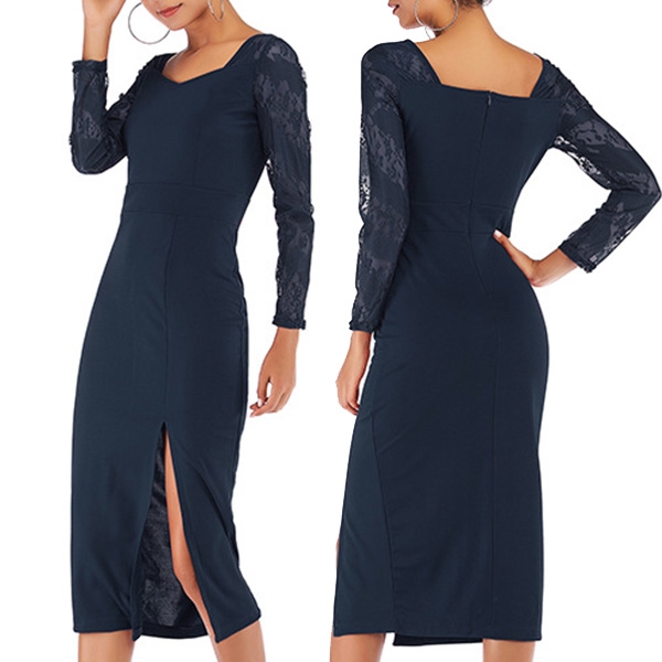 The lace spliced long sleeve and slit hem design can further enhance your feminine appeal,while the fit