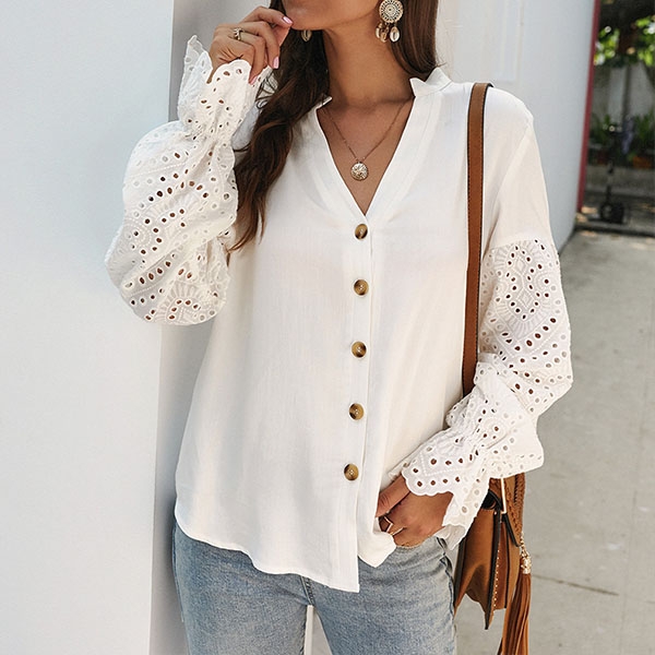 the lace spliced details and v-neck design can exude your charming feminine appeal.