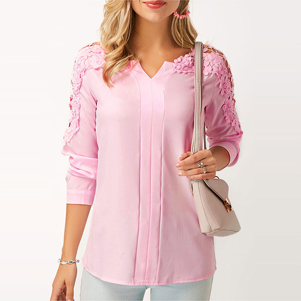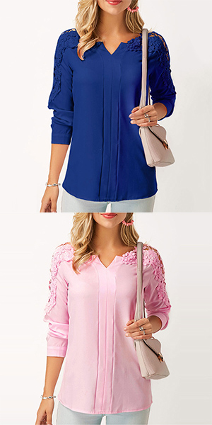 good choice. Solid color style,the lace spliced long sleeve and little v-neck