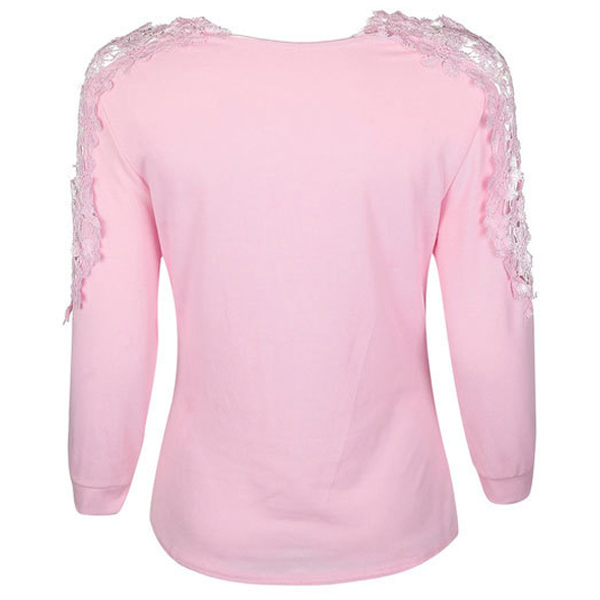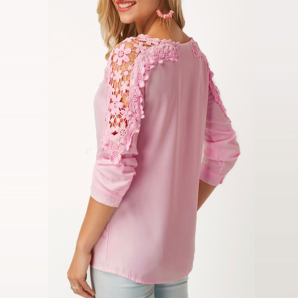 Fashion Lace Spliced Long Sleeve V-neck Solid Color Blouse