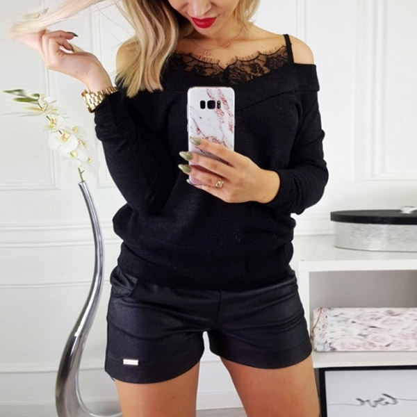 give you a distinctive look.The shirt in high quality and soft material,with off-shoulder design,