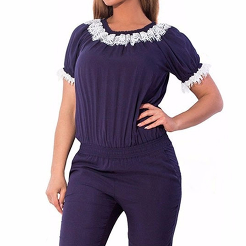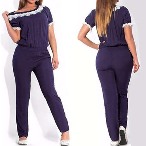 Style and sophistication come together so perfectly in this jumpsuit! Its lace spliced,short sleeve,round neckline,