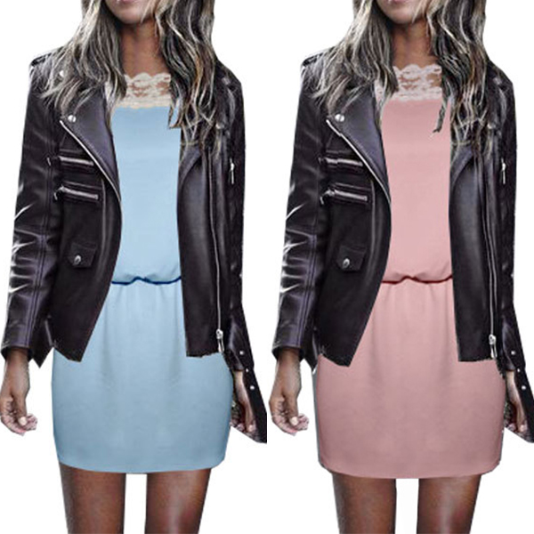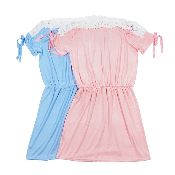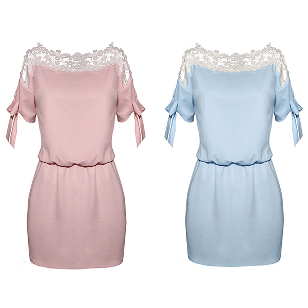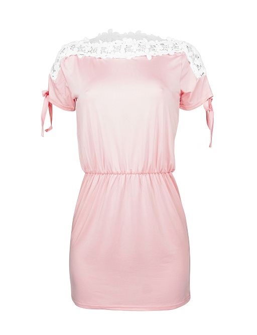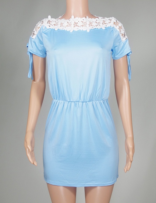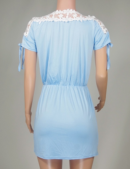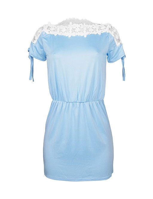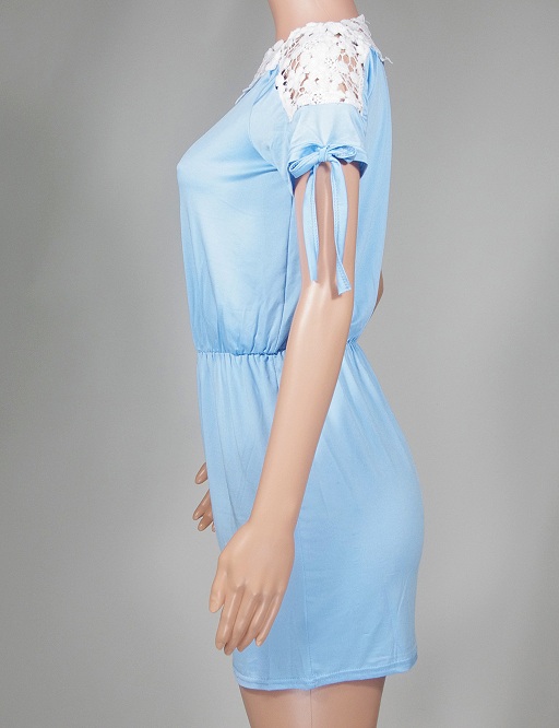 short sleeve,round neck and an elastic waist,this dress can promise you a comfortable day. What's more,the lace spliced details