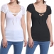 Make this cozy yet feminine t-shirt as one of your summer staple. Solid color style,its lace spliced design can add some