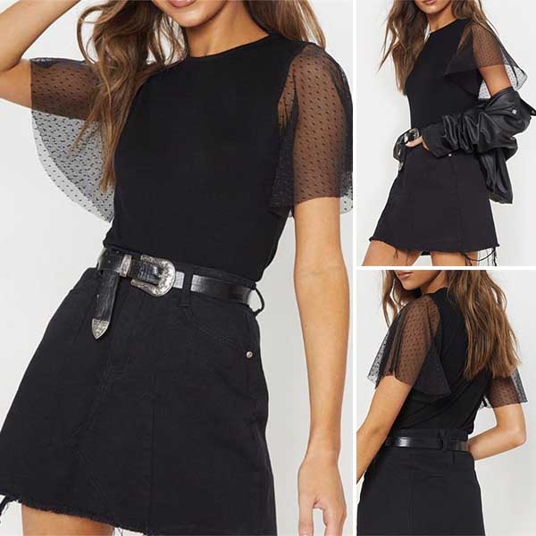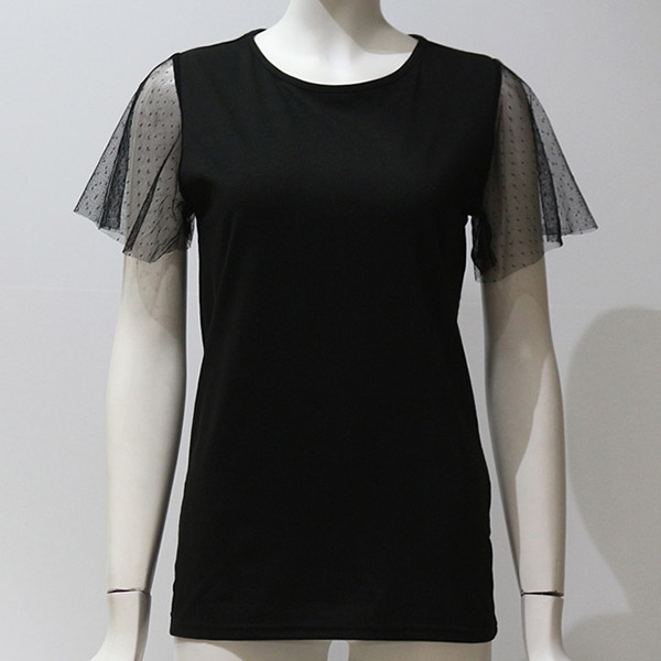 it look simple and generous,while the gauze spliced design at the sleeve part enhance its charm.