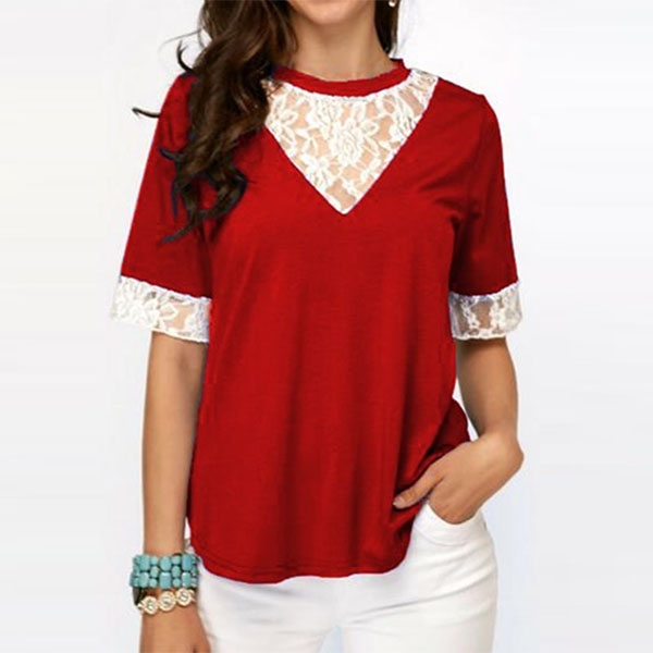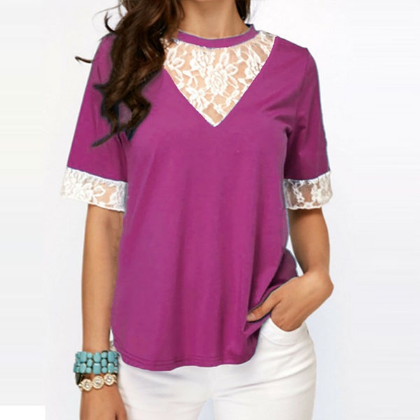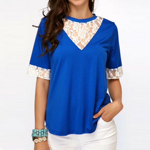 round neck design,its soft and breathable fabric can ensure you a comfortable day,while the lace spliced
