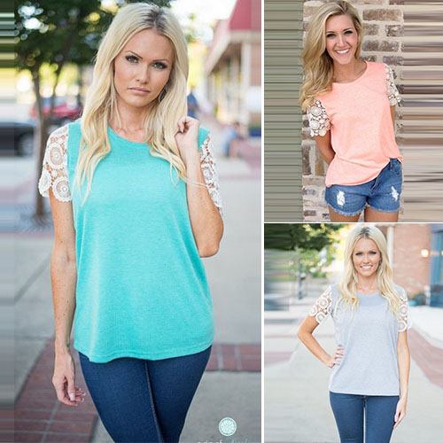 Features lace spliced short sleeve and a round neck. You can pair it with any bottom thanks to