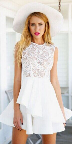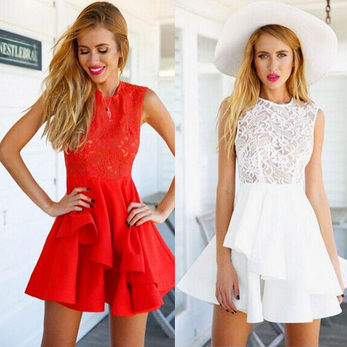 round neck and high waist design,shows her slender figure. Lace spliced design makes