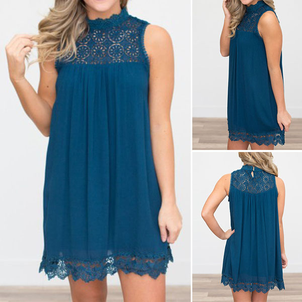 Even on your casual days,you can maintain your stylish style with this dress. Lace spliced style,designed with sleeveless,