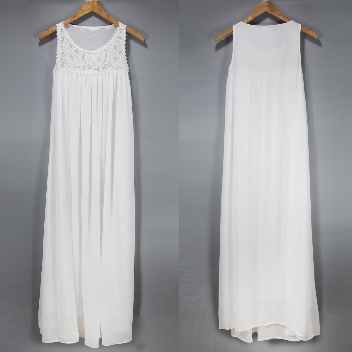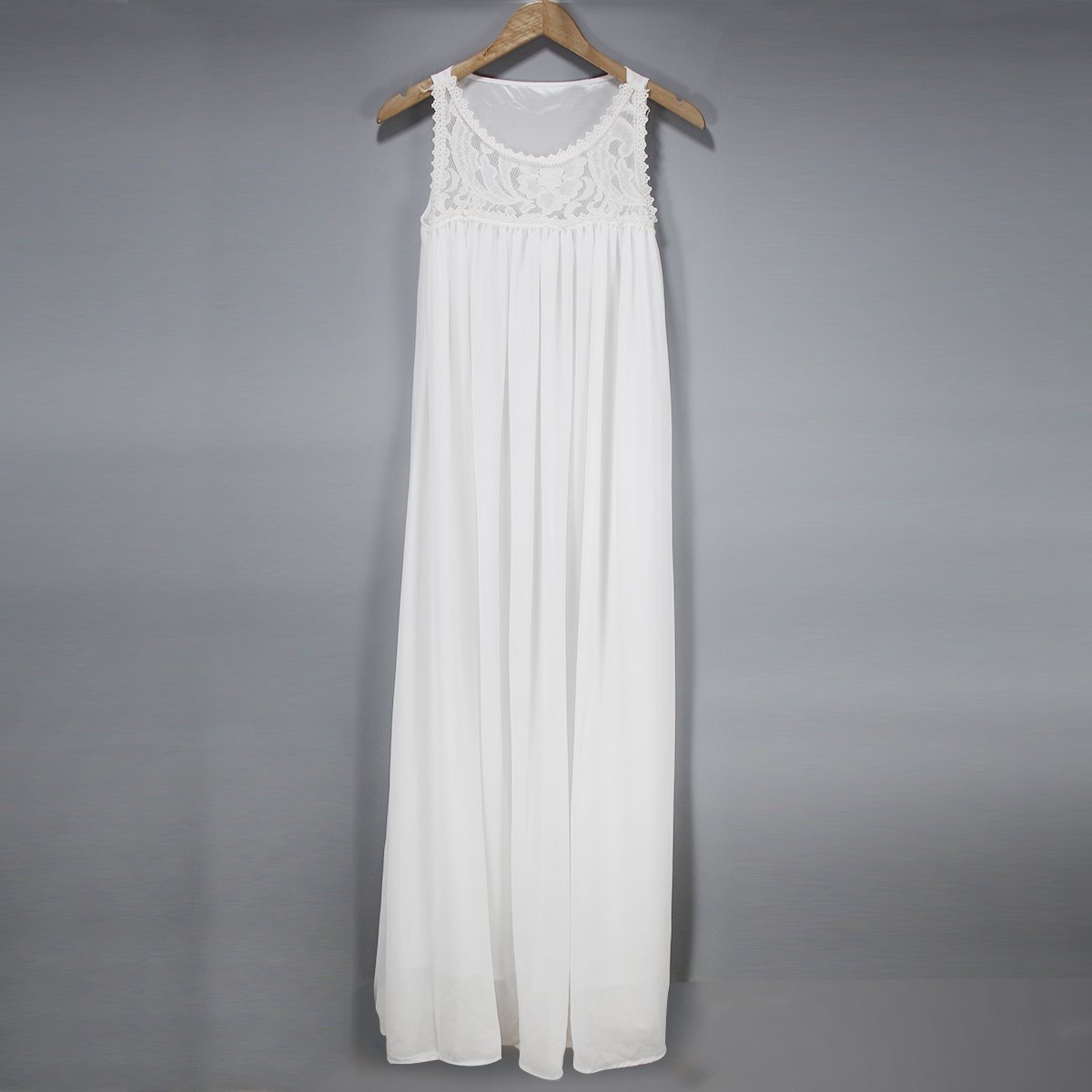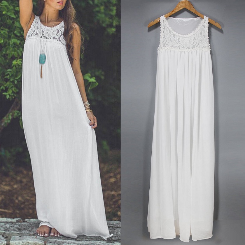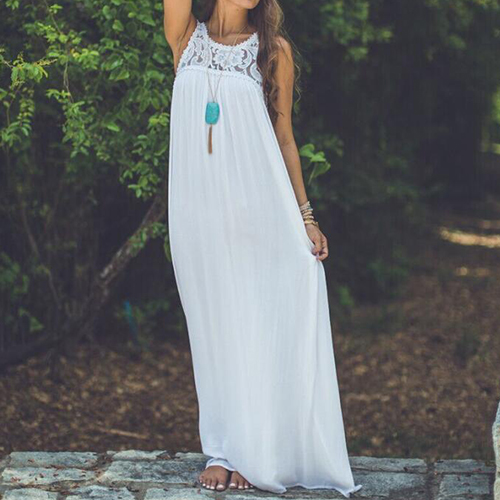 on this dress. Lace spliced style,with sleeveless,round neck and a maxi length,cozy yet feminine.