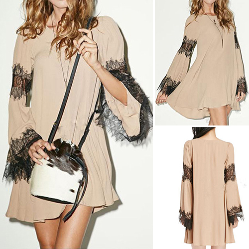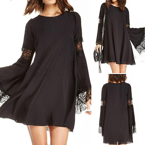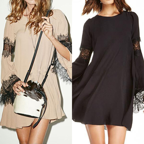designed with trumpet sleeve,v-neck and a loose silhouette,this dress can keep you cozy yet stylish. Plus,its lace