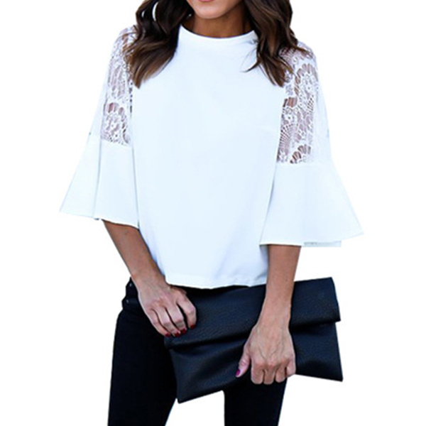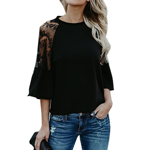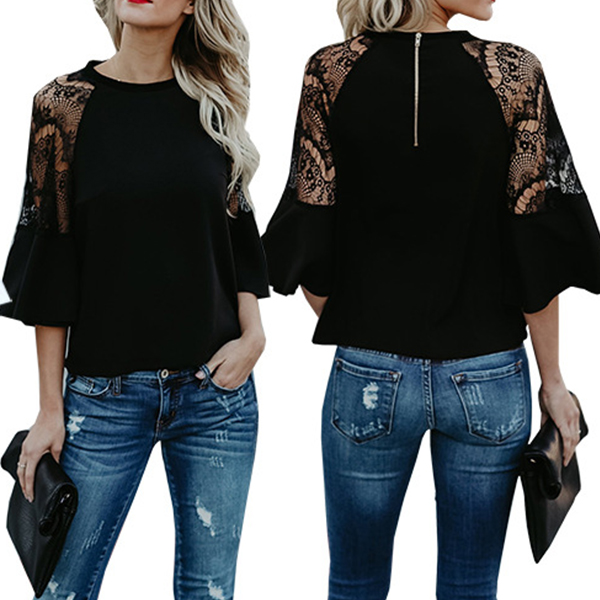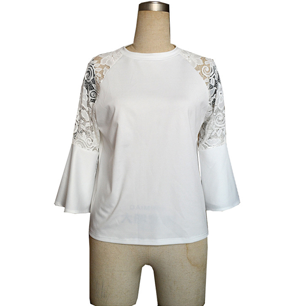 Exude your feminine appeal and stylish taste through this wonderful piece. Solid color style,the lace spliced trumpet