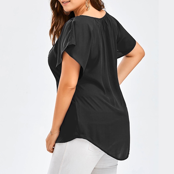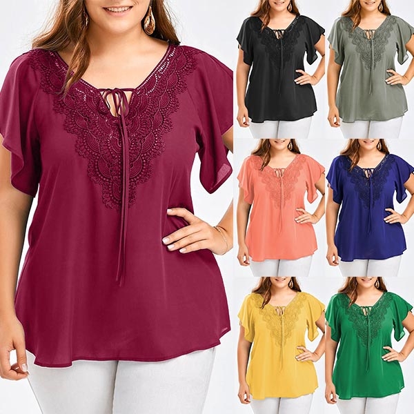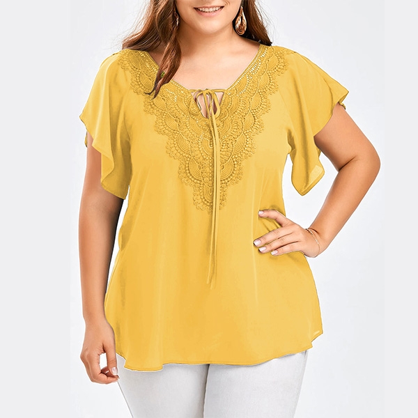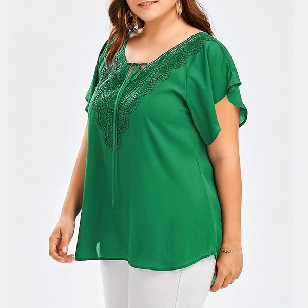 This tops comes with a solid color,with short sleeve,v-neck and lace spliced design,