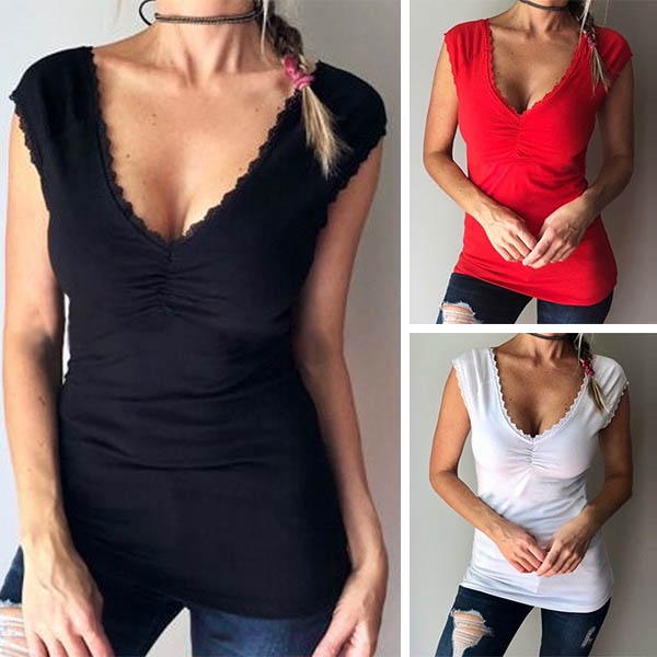 sleeveless,v-neck and lace spliced details,this piece not only can offer you a comfortable day,but also